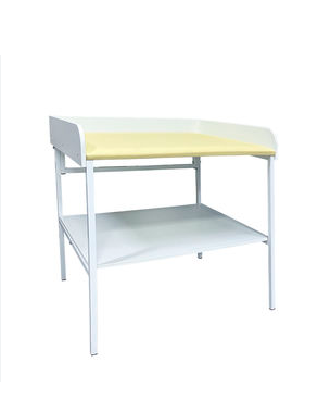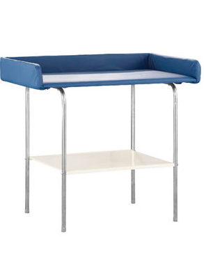 Table bébé nue conçue pour l’examen du nouveau-né . Il se compose d’une structure en tube métallique et en bois et recouverte de tissu.