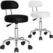 Tabouret à roulettes. Design classique, avec dossier et vérin à gaz.