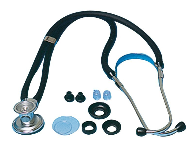 Stéthoscope en alliage de zinc 5 en 1, livré complet avec jeu d’accessoires et membranes de rechange. Convient pour les examens adultes, pédiatriques et néonataux.