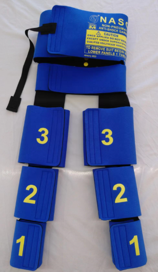 Destiné aux femmes souffrant d’hémorragie postpartum incontrôlable (PPH), pour contrôler le saignement, inverser le choc et stabiliser le patient pour un transport sûr vers un établissement de soins obstétricaux complet. Le NASG applique une pression sur le corps inférieur et l’abdomen, stabilisant ainsi les signes vitaux et résolvant le choc hypovolémique.